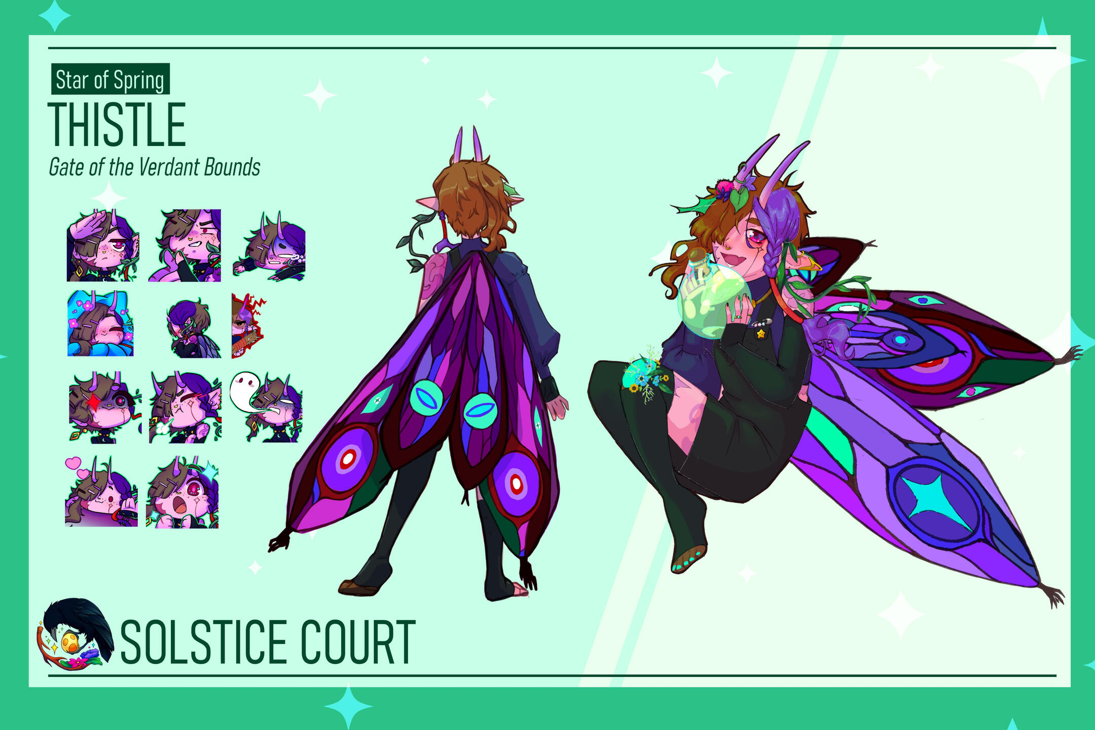 The Court features two wonderfully talented artists, Roman and Thistle, who provide us with lovely renditions! This gallery contains official reference sheets for our personas, as well as various fun doodles that have materialized along the way.